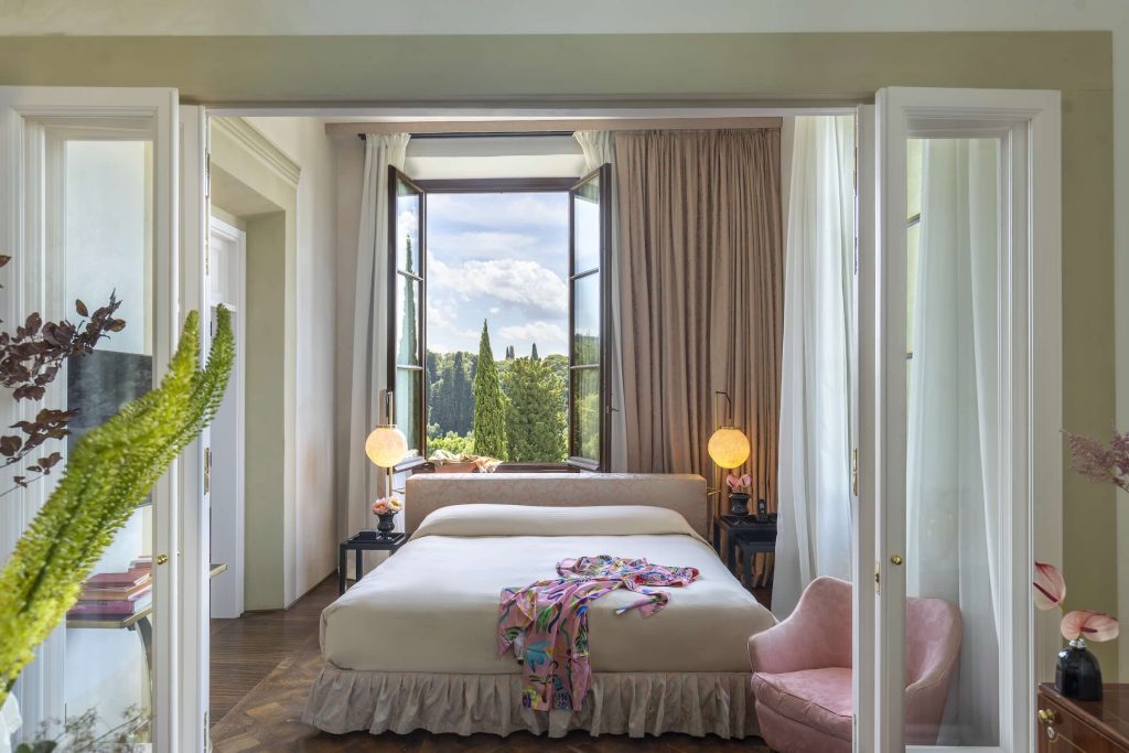 Set within 12 hectares of private parkland, about five kilometres northwest of Florence’s (not-so) dead centre, Il Salviatino—a 15th-century villa built by the family after whom it is named—is a testimony to the tastes, passion, and diligence of its owner, Milanese entrepreneur Alessandra Rovati Vitali. It’s a place where classic, mid-century, and modern furnishing—Gio Ponti chairs, Mario Bellini sofas, pieces acquired at a Ritz Paris auction—are set amongst a profusion of plants, perennials, and flowers, and every hideaway, every nook, cranny, and stretched alcove has its own aesthetic identity: some harmonious, some offering a masterclass in discordant harmony.