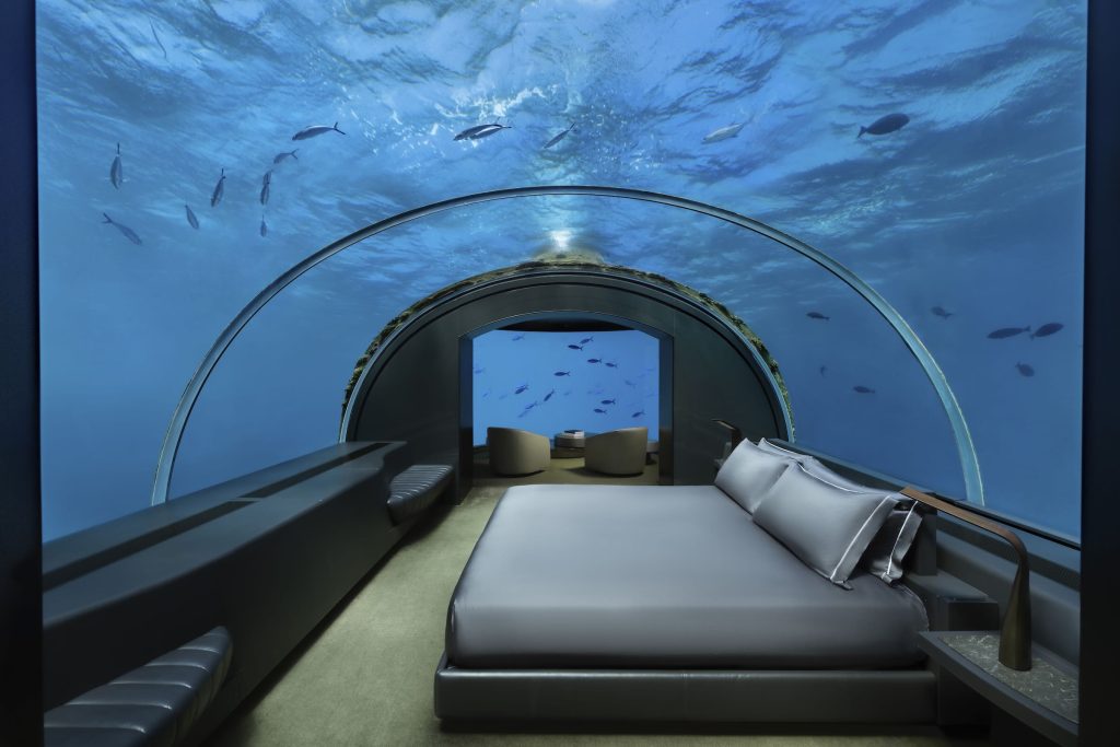 Some places feel imagined before they are experienced—The Muraka is one of them. At Conrad Maldives Rangali Island, this two-level residence invites guests to exist both above and below the Indian Ocean. Upstairs, a serene villa opens onto an infinity pool and uninterrupted sea views. Downstairs, a master suite encased within a curved acrylic dome offers a 180-degree panorama into the underwater world—an immersed existence among coral gardens, shifting light in gentle undulations, and reef life gliding past in silence is promised and celebrated.