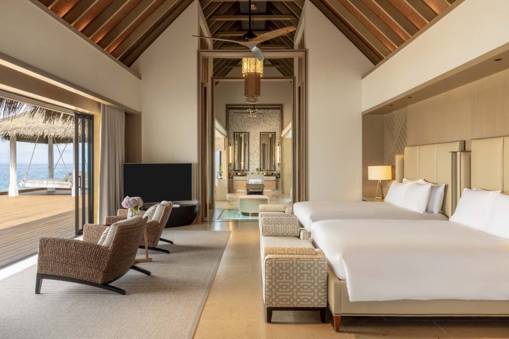 Spanning more than 32,000 square metres, this standalone island estate offers something profoundly rare: the sensation of an entire world belonging to you. Accommodating up to 24 guests across beachfront and overwater residences, it is designed for gatherings that matter—milestone birthdays, family legacies, and celebrations measured not in days, but in generations.