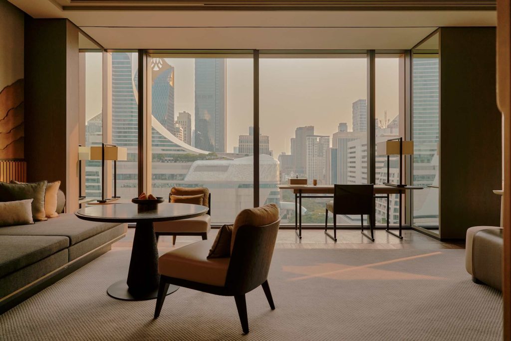 A legend has been reborn, and the new incarnation of Dusit Thani Bangkok stands at the crossroads of tradition and reinvention. Where once the original hotel watched over Lumpini Park, its successor rises—sleek, contemporary, and yet unmistakably Thai at heart, presented with all the flourishes that Hong Kong’s own André Fu can muster. Heritage is not a backdrop but a living, breathing presence. Guestrooms embody modern residences, layering panoramic city views with wood and marble. Lotus motifs, local ceramics, and patterned screens are paired with modern, plush comforts. Cannubi by Umberto Bombana, affectionately referred to as “the king of white truffles,” brings the enoteca experience to Bangkok, while Rosarin Sriprathum takes diners on a journey through the rich culinary tapestry of regional Thai cuisines at Pavilion.