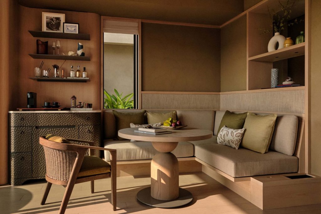 Villas are sanctuaries of seclusion and style. Each features a private pool, outdoor living area, and panoramic views that blur the boundary between indoors and the wild beauty beyond. Interiors are dressed in volcanic stone, rich woods, and handwoven fabrics, with thoughtful touches like artisan-crafted furniture and luxurious linens. Bathrooms open to tropical gardens, offering a spa-like retreat in total privacy.