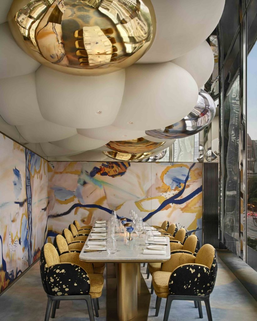 Notably, Back’s mother’s art is everywhere—in the ceramics, on the menu cover, on the walls. It’s a constant companion for the chef, and AB Concept seamlessly melds Young-hee Back’s abstract motifs into the greater interior canvas. Wang shares that “the artwork of Back’s mother is indeed the heart and soul of the brand, as her cooking was the original inspiration for his culinary journey.” As a tribute, her paintings play prominent roles as large-scale statement pieces in the private dining room and above the sushi bar, “ensuring her creative spirit is part of every aspect of the dining experience,” says Wang. Book out the private dining room, if only to ooh and aah at the whimsical “marshmallow” ceiling—it’s Back’s favourite space in the restaurant because of his mother’s artwork, but it’s our favourite because of the superb views.
