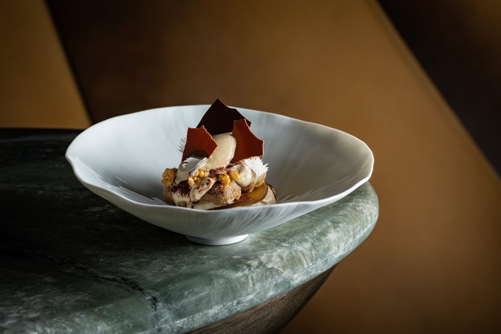 Akira Back’s apple harumaki dessert is highly accomplished and unexpected. It presents the nostalgic flavours of a comforting apple pie in the form of a deep-fried Japanese spring roll bursting with a delightfully sweet, mouthwatering filling of cinnamon cream cheese and caramelised apple, but the most remarkable part about the dish is it perfectly maintains its structural integrity and superbly crisp texture well after it’s been served. Meanwhile, the tart, light, and bright yuzu shiso—featuring a melange of confit citrus fruit, lime madeleine, yuko yuzu sorbet, and green shiso cream—refreshes the palate with a zesty punch, capping off the meal.