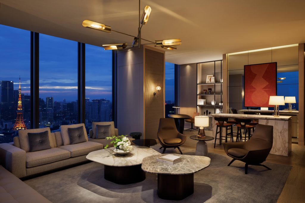 Ascending to the 35th-floor reception, visitors are enveloped in a verdant expanse of greenery, leading to expansive outdoor terraces that juxtapose the calm azure of Tokyo Bay to the east with the pulsating energy of the metropolis and the iconic Tokyo Tower to the west. This duality—serenity and vibrancy—permeates the hotel. Designed by the renowned Bar Studio, the interiors weave a tapestry of colour, texture, and light. Curated artworks, drawing inspiration from Japanese traditions such as kintsugi and intricate weaving, adorn the spaces, creating living masterpieces that pay homage to the nation’s artistic legacy.