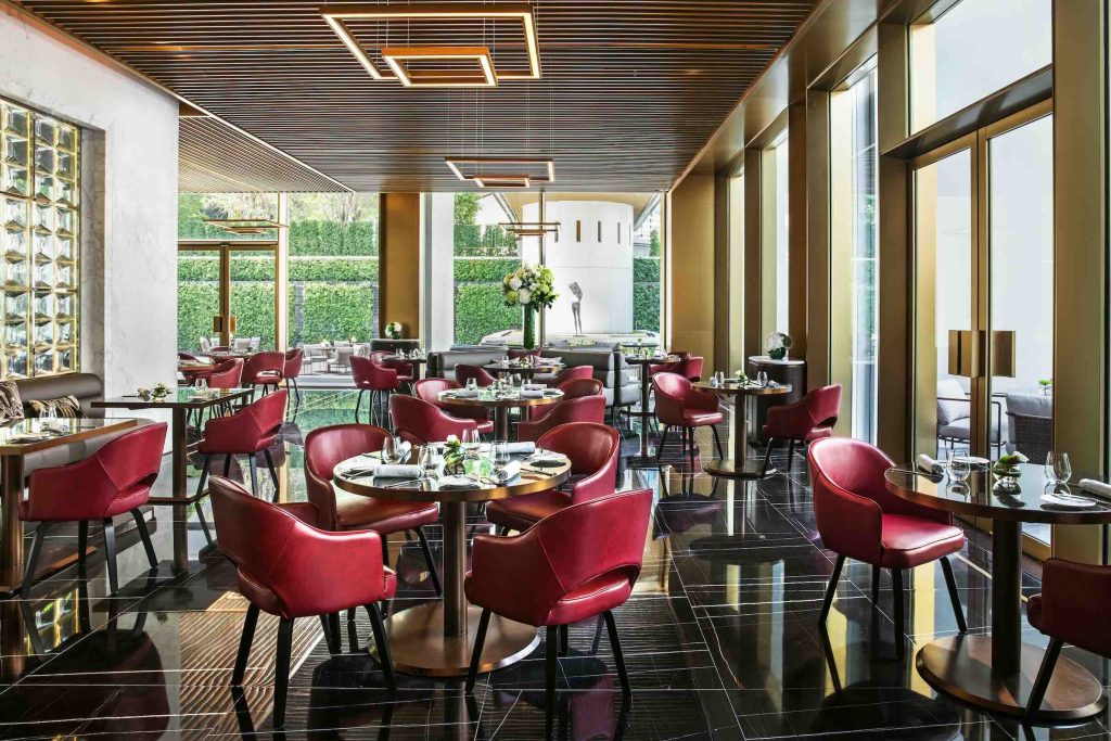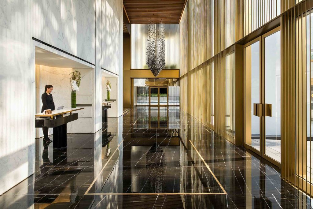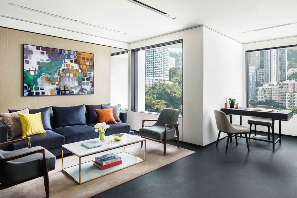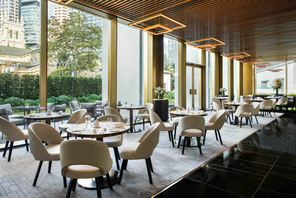 Built in 1969, the building was reimagined by acclaimed architectural firm Foster + Partners, and today, the hotel remains a benchmark in thoughtful restoration. Its iconic white façade and three-storey arches were preserved, and the original recessed windows, now enlarged, frame views of the skyline and verdant Hong Kong Park, allowing natural light to flood the interiors while minimising solar heat gain. A new design language, one that speaks to discreet luxury, was introduced. Polished stone, stainless steel finishes in a signature “bronze,” and floor-to-ceiling windows reflect a refined design ethos. Its lobby’s soaring volumes, accented by curated art, offer a quiet contrast to Hong Kong’s relentless energy.